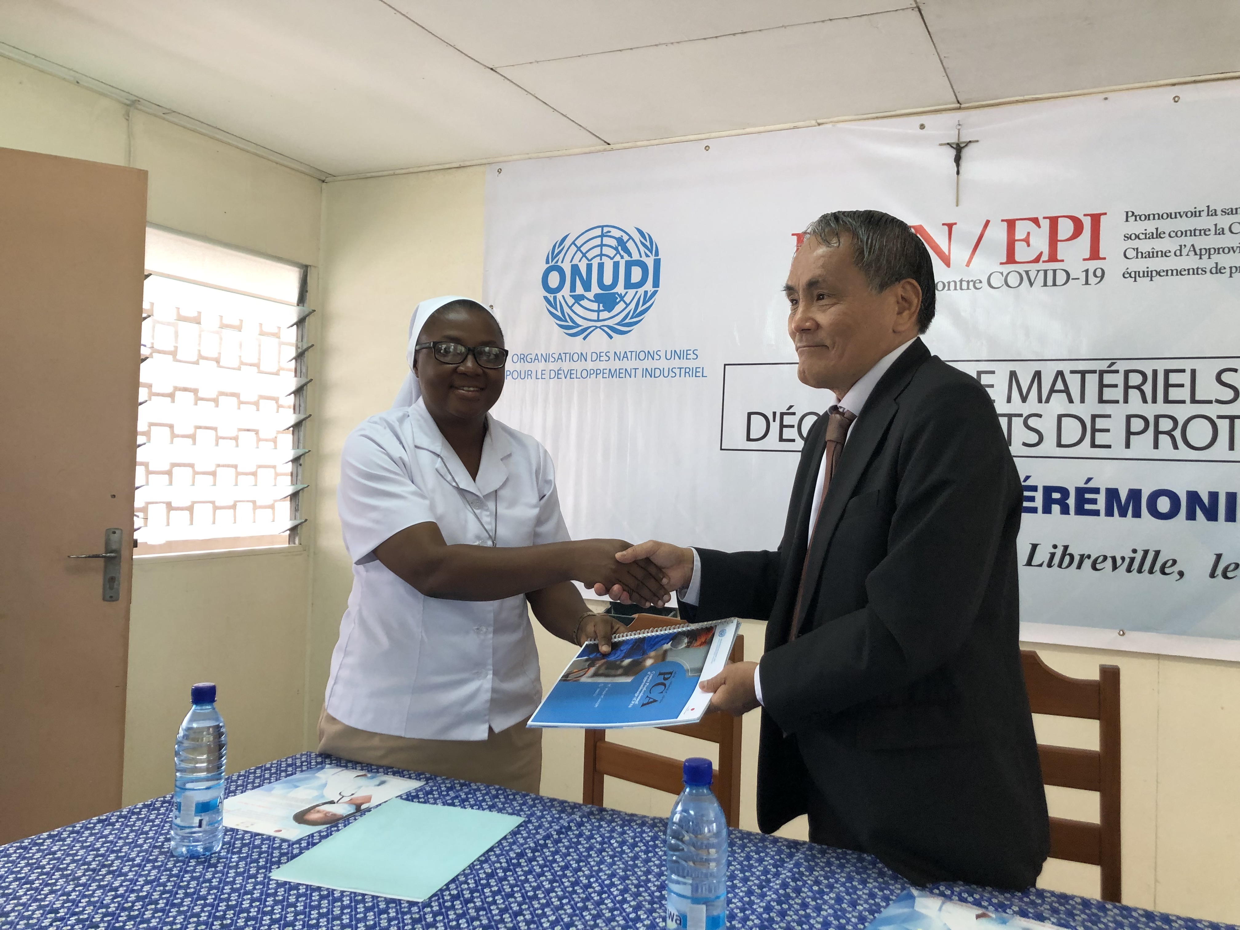 Le 10 décembre 2021 s’est tenue la cérémonie de lancement officiel du Projet « Promouvoir la Santé Publique et la résilience sociale contre le COVID-19 en renforçant la chaine d'approvisionnement nationale des équipements de protection individuelle » à l’Hôtel Boulevard en présence de l’Ambassadeur du Japon au Gabon S.E.M. NOGUCHI Shuji, de la Représentante de la Coordonnatrice Résidente des Nations Unies au Gabon, et des Représentants du Gouvernement Gabonais. Le gouvernement japonais a accordé à ce projet un financement de 647.745 USD (soit plus de 350 millions de F.CFA) visant à la promotion de l’hygiène publique et à la résilience sociale à la COVID-19 en renforçant la chaine d'approvisionnement nationale en équipements de protection individuelle (EPI), en gels désinfectants ainsi qu’en produits d'hygiène. Plus précisément, ce projet permettra non seulement de renforcer la capacité de production via la formation des producteurs nationaux en masques en tissu et en gels désinfectants et ces qualités, mais aussi d’améliorer l’approvisionnement en matériaux et produits auprès des fournisseurs concernés. Cela permettra également aux petites et moyennes entreprises locales d’améliorer la capacité de production des équipements, ce qui entrainera le développement de l'économie et la résilience de la société gabonaise dans son ensemble. Ce projet financé sera mis en œuvre par l’Organisation des Nations Unies pour le Développement industriel (ONUDI) en collaboration avec le Ministère de la Santé ainsi que le Ministère du Commerce, des Petites et Moyennes Entreprises et de l’Industrie du Gabon.