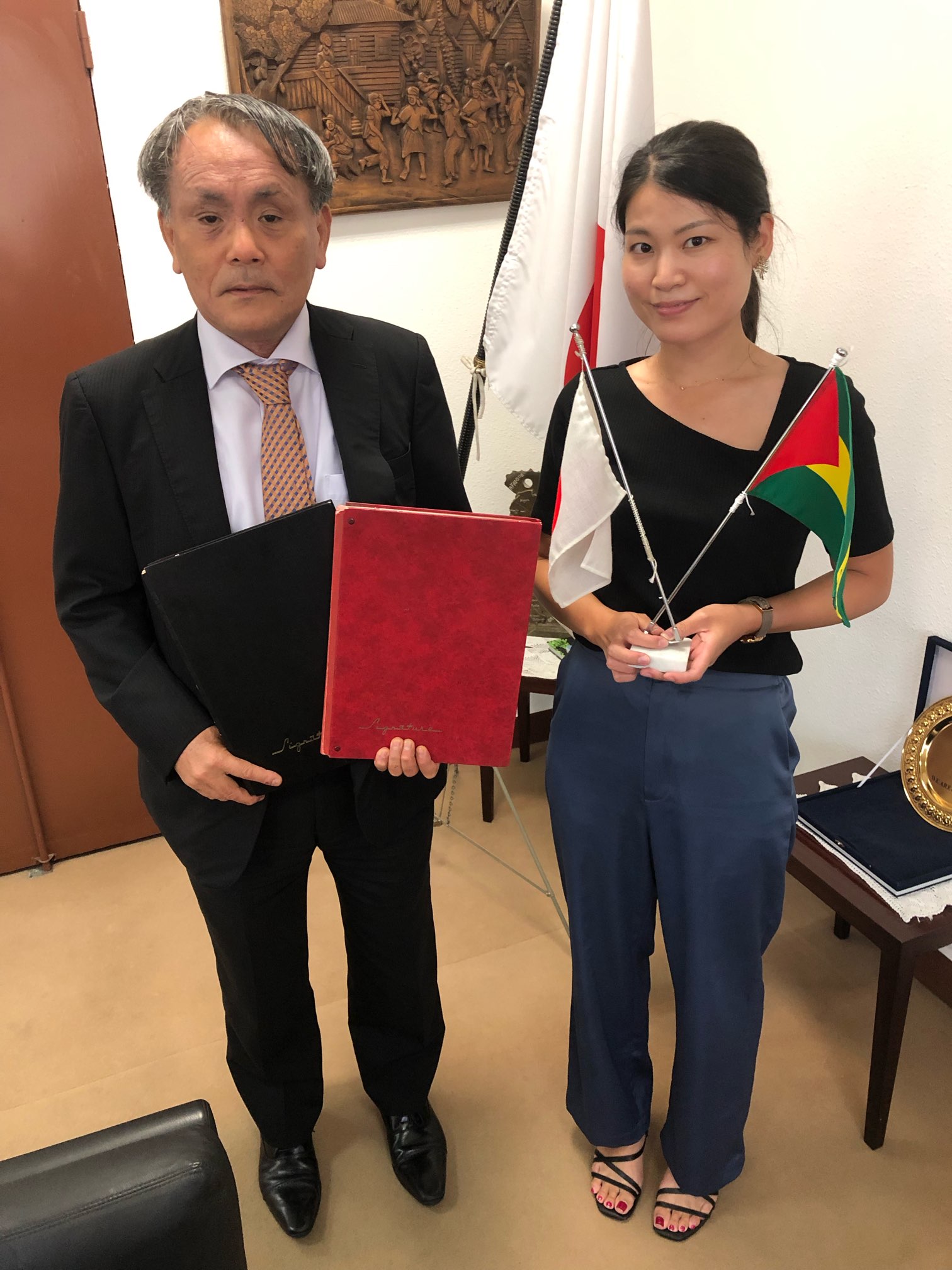 L’Ambassadeur du Japon NOGUCHI Shuji et Izilda Soares, Directrice du Jardin d’enfants de Bombom, dans le district de Mé Zochi, à Sao Tomé et Principe, ont finalisé le 02 mars 2022 la signature du contrat de don pour « Le Projet de construction et de réhabilitation du Jardin d’enfants de Bombom » financé par le Japon pour un montant de 71.000 € soit plus d’un million sept cents mille dobras dans le cadre du programme de coopération bilatérale dénommé les « Dons aux micro-projets locaux contribuant à la sécurité humaine ».