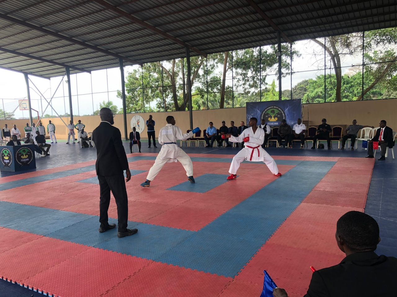 5月13日、第10回日本大使杯空手大会が、当館とガボン空手連盟の共催で開催されました。空手家たちの熱い戦いが繰り広げられ、観客も大いに盛り上がりました。当館から野口大使が出席した他、ガボン側からンドゥンダ・スポーツ省事務次官及びオンゴンジャ空手連盟会長が出席し、日・ガボンのスポーツを通じた友好的な協力関係を再確認する大会となりました。