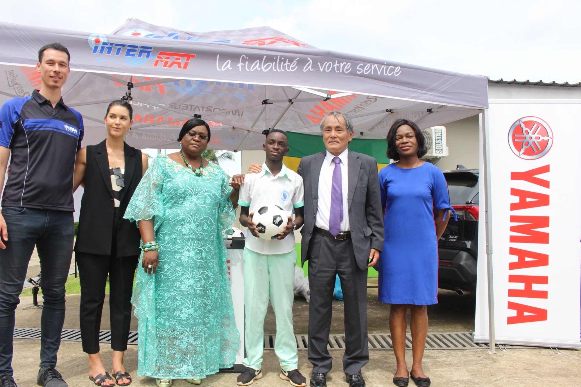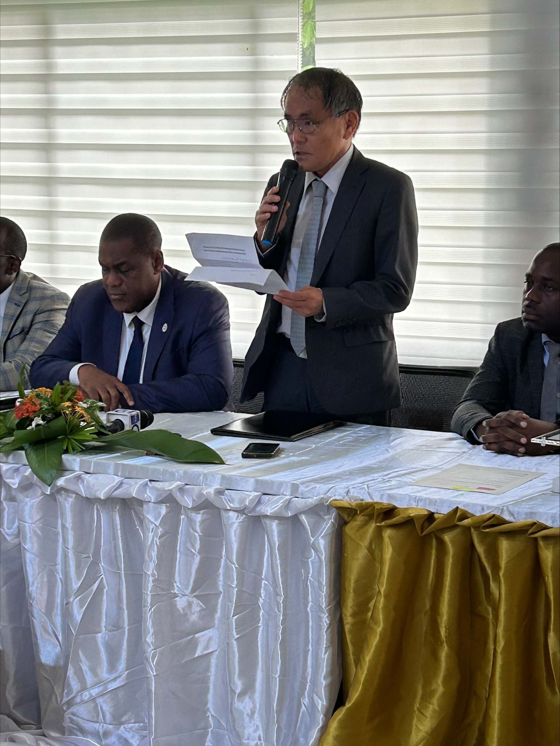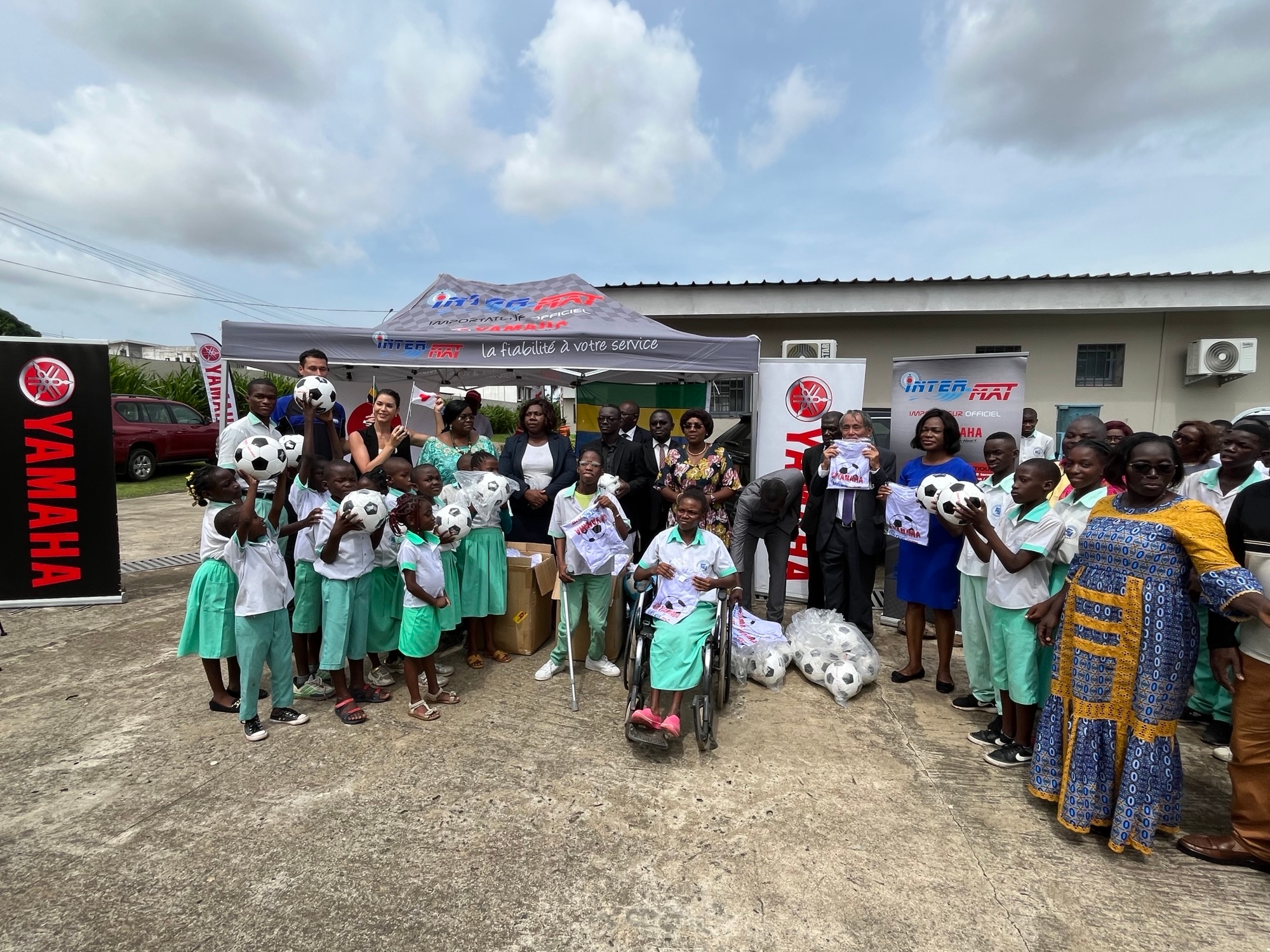 2024年4月12日、国立聴覚障がい児学校(ENEDA)において、野口修二大使、社会課題省リッセンゲ・ヤパ・パウル事務次官及びオバム・オンド・シャール官房長臨席の下、ヤマハ発動機がガボンの公式代理店INTER-MATとともに寄贈したサッカーボール及びTシャツの寄贈式が行われました。ヤマハ発動機は2019年からアフリカに対する社会貢献事業として「アフリカの子どもたちにサッカーボールを」プロジェクトを行っており、本年はガボンを対象に200個のサッカーボールとTシャツを寄贈しました。この式典では、ENEDAの子供たちだけでなく、困難な状況にある子供や若者の支援に尽力する他の4つの施設(ブノワ・メッサーニ社会複合施設、バ・ドゥ・ゲ・ゲ社会福祉センター、ヌドシ・アコムガ国立センター、アンゴンジェ社会困窮児保護センター)にも配布されました。日本からガボンを訪問し、同式典へ参列したヤマハ発動機の福島氏は、ガボンと日本の協力関係を強化し、スポーツを通じて子どもたちの成長と福祉に積極的に貢献できることへの喜びを表現しました。このイニシアチブは、スポーツが個人の成長のためのツールであり、若者の喜びであることの重要性を強調し、ガボンの障がいを持つ子供たちの心に希望と活力を与えるものです。